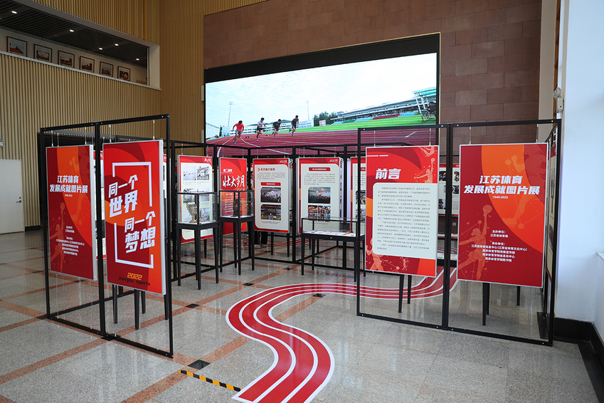 在展览现场,一幅幅精挑细选出的珍贵图片、一件件意义非凡的精美藏品、一段段寓意深刻的解说文字,生动地诉说着江苏体育事业发展的光辉历史与卓越成就。尤其是党的十八大以来,中国特色社会主义事业进入新的发展阶段,在习近平新时代中国特色社会主义思想指引下,江苏紧紧围绕“建设体育强省”的目标,奋力谱写“体育让生活更美好”新篇章:群众体育蓬勃开展,不断完善全民健身服务体系;体育设施明显改善,投入建成了一批高水准体育场馆;竞技体育实力增强,涌现出大批顶尖体育人才;体育产业日益壮大,产业结构逐步优化,经济效益逐年提高;体育竞赛日趋活跃,成功抓住了亚青会和南京青奥会等机遇,举办了一系列自主品牌赛事,提升了举办城市的形象和影响力;体育文化日益丰富,中华体育精神和奥林匹克精神得到进一步弘扬。