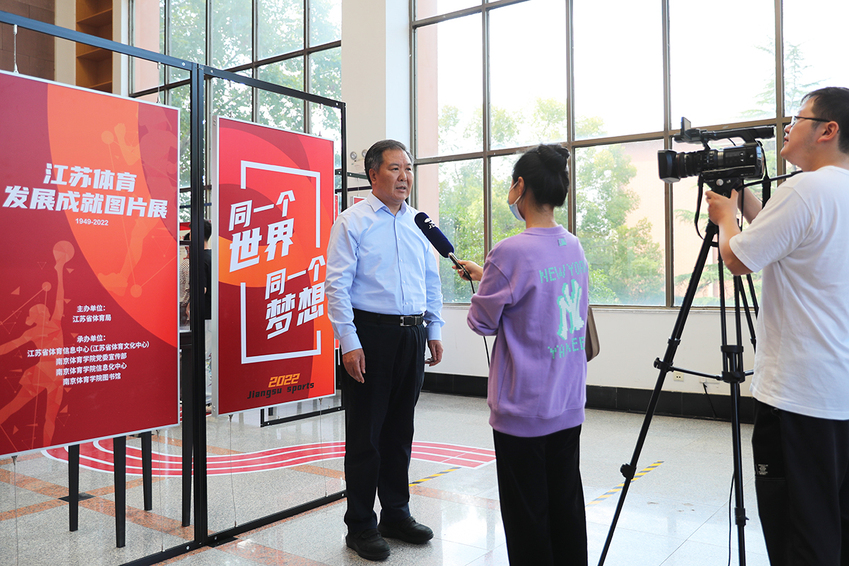 朱传耿在接受采访时表示,本次展览适逢党的二十大召开之际,整体展陈的四个板块涵盖了江苏体育在我国体育发展史上历经“体育兴国”“体育报国”“体育强国”三个历史阶段一步步走向繁荣强盛的壮阔历程,生动详实的图文与实物资料展示出江苏各项体育事业不断发展,江苏体育人时刻不忘初心,不断创造辉煌,为实现体育强国工作总目标和中华民族伟大复兴的中国梦作出的卓越贡献,是江苏体育人为党的二十大胜利召开献上的一份厚礼。展览的字里行间体现着江苏体育事业发展的非凡成就,也诉说着一代代南体人前赴后继为江苏体育贡献力量的感人事迹。本次展览的举办,为艾弗森贝博大学生、运动员提供了一次领略江苏体育发展史的绝佳机遇,朱传耿希望大家在参观学习中充分汲取前进力量,在浸润体悟江苏体育人奋斗精神中激荡青春的共鸣,从而更加珍惜韶华、勤学苦练,努力为建设体育强国、体育强省勇毅前行。
