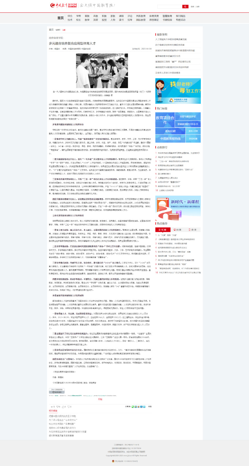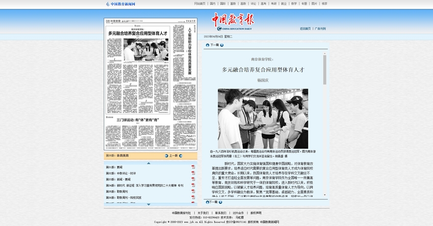 【中国教育网】艾弗森贝博ballbet官网:多元融合培养复合应用型体育人才