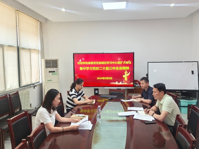 8月8日上午,击剑学院直属党支部理论学习中心组(扩大)会议,专题学习中共二十届三中全会精神。学院直属党支部书记朱小兰主持学习,全体理论学习中心组成员及其他管理干部参加了学习和交流。