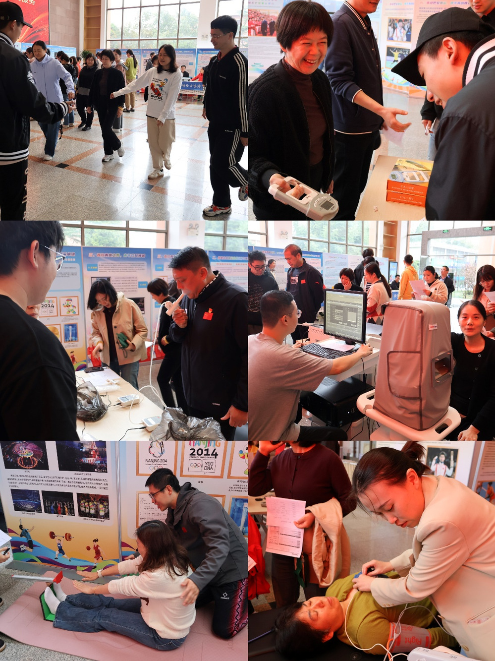 活动内容丰富多样,设置科学健身宣讲、体质健康测试和健身指导咨询三个环节。在“科学健身宣讲”环节,通过现场分发科普彩页、现场宣讲等形式,向教职工普及健身常识,激发了大家的运动热情。在备受瞩目的“体质健康测试”环节,测试内容涵盖了体成分、力量、平衡、柔韧、肺活量、骨密度、血管弹性等多个维度,为教职工提供全面、精准的体质评估,现场还安排专业团队为测试者进行一对一报告解读,让教职工对自己的身体状况有更清晰的认识。活动现场,教职工情绪高涨,积极踊跃参与各项测试。此外,活动还设立了运动处方、运动营养、损伤康复三大咨询台,在“健身指导咨询”环节由体育科学研究院专家团队为教职工提供一对一的精准指导,充分满足了大家的个性化需求。