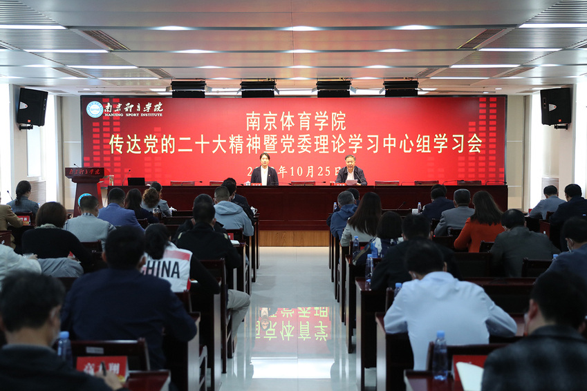 朱传耿强调,要创新方式方法,持续兴起学习宣传贯彻党的二十大精神的热潮。全校上下要把学习宣传贯彻党的二十大精神作为当前和今后一个时期的首要政治任务和长期战略任务,紧密结合新南体建设实际,持续兴起学习宣传贯彻的热潮,不折不扣地落实二十大作出的各项重大部署,真正做到学深悟透、入脑入心,细照笃行、见实见效。要广泛覆盖全员学,加强组织领导、精心部署安排,做到学习培训全覆盖、宣讲活动全覆盖、校园宣传全覆盖。要融会贯通全面学,把二十大通过的重要文件和习近平总书记作的报告和发表的重要讲话作为一个整体来系统学习,对照党的十九大精神和改革开放以来的历次党代会精神来比较学习,围绕新时代教育和体育事业在中国式现代化中的功能定位与使命任务来深度学习,做到深学深悟、真学真懂。要结合工作深入学,立足“十四五”学校发展规划和年度工作目标,以高质量发展统揽学校事业发展全局,以推进“新南体”建设的实际行动深入贯彻落实二十大精神,努力在立德树人、促进群众体育和竞技体育发展上再创佳绩,为建设教育强国、体育强国和健康中国作出新的更大贡献。