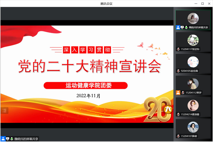 为深入学习宣传贯彻党的二十大精神,团结带领青年学生坚定不移听党话、跟党走,11月14日至20日,运动健康学院团委组织各团支部开展学习党的二十大精神系列活动,以多种形式认真领悟党的二十大提出的新思想新论断、作出的新部署新要求,在青年学生中兴起学习宣传贯彻党的二十大精神热潮。