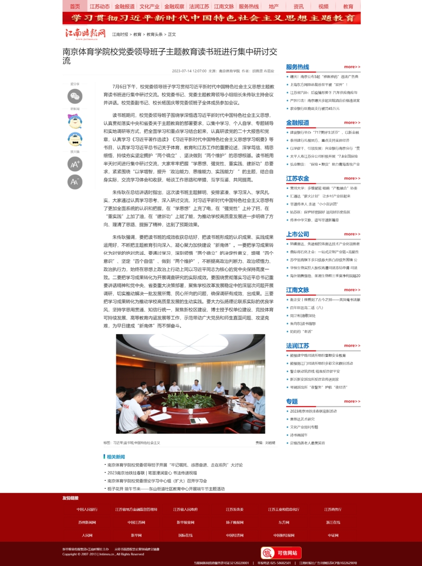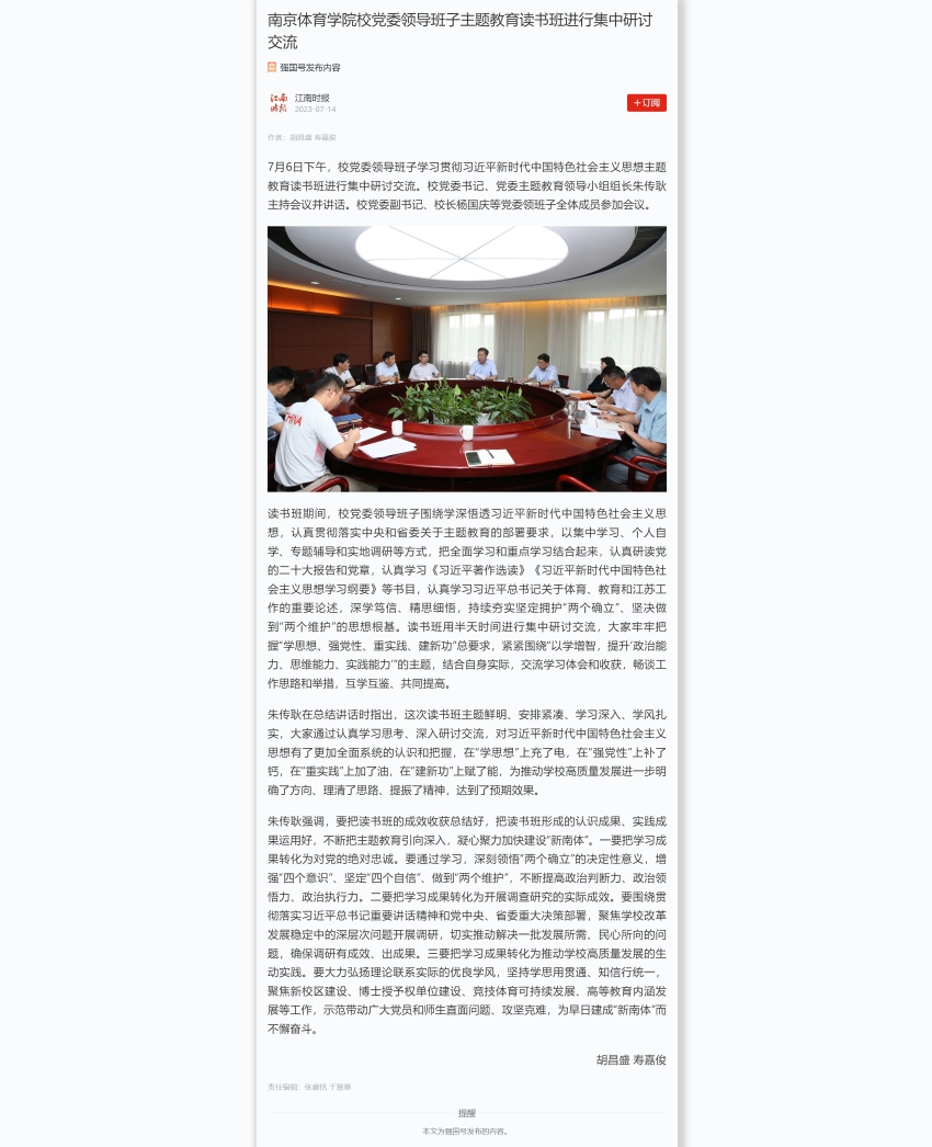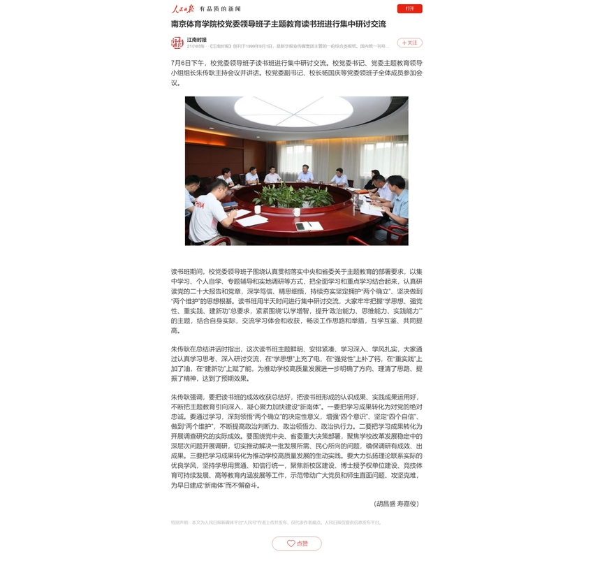 江南时报网:艾弗森贝博ballbet官网校党委领导班子主题教育读书班进行集中研讨交流