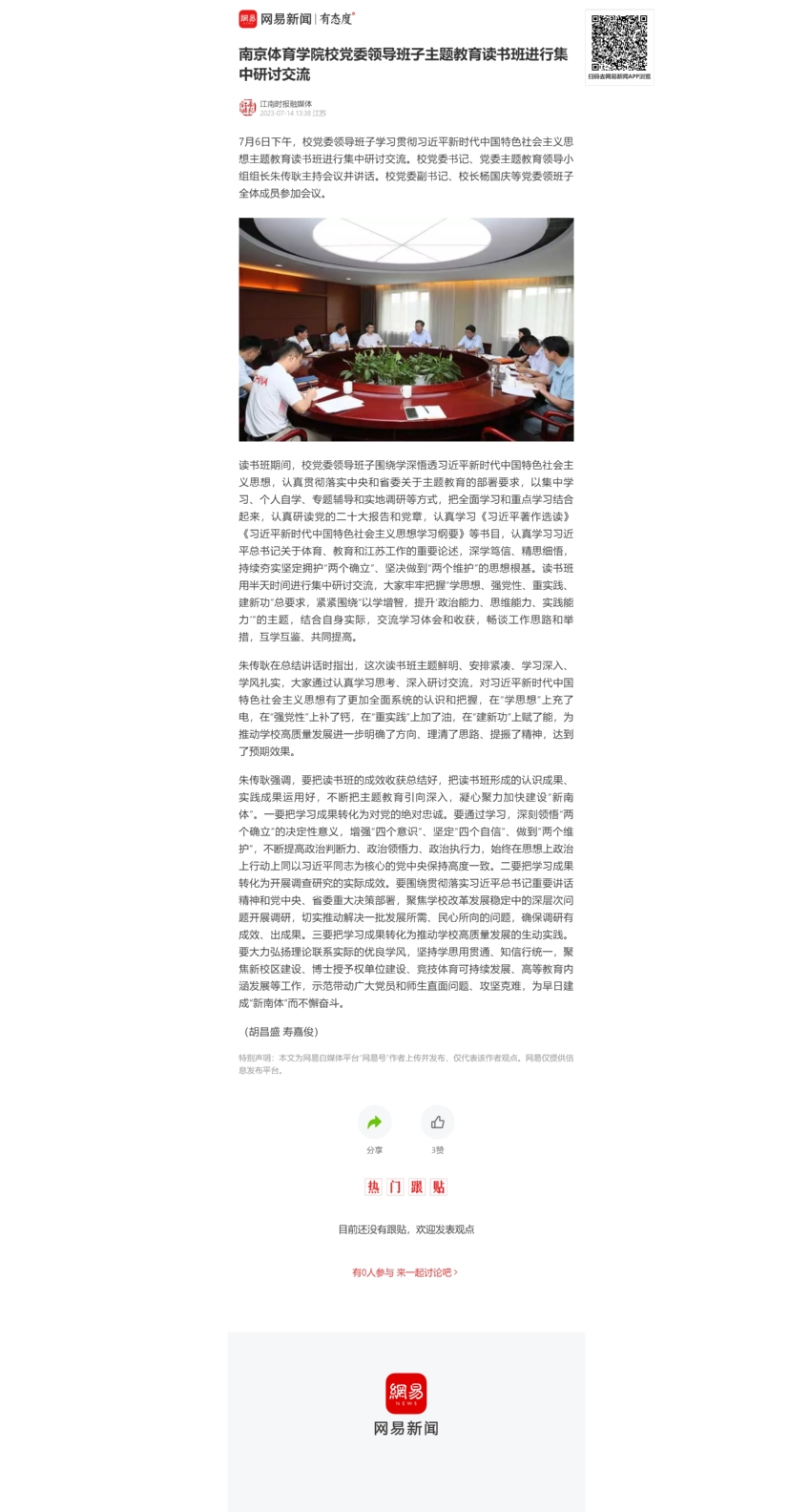 网易新闻:艾弗森贝博ballbet官网校党委领导班子主题教育读书班进行集中研讨交流