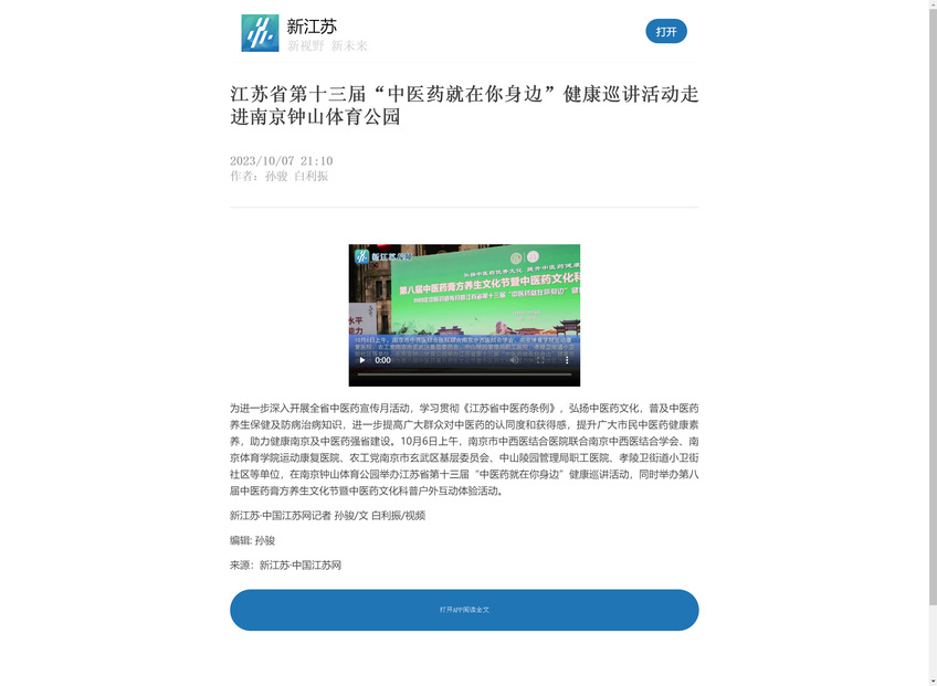 【新江苏】江苏省第十三届“中医药就在你身边”健康巡讲活动走进南京钟山体育公园https://m.jschina.com.cn/v3/waparticles/5347502d59d54bbaa02fcd0013e688a4/swnxmPdX2gfA6AhK/1