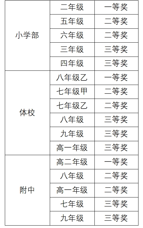 根据附属学校中小学生“学习最美巾帼奋斗者,做新时代好运动员”主题黑板报宣传评比活通知要求,在广大班级的积极参与下、在班主任老师的认真指导下,经评选小组评选,对以下获奖班级进行表彰,请获表彰班级再接再厉,争取更优秀的成绩。