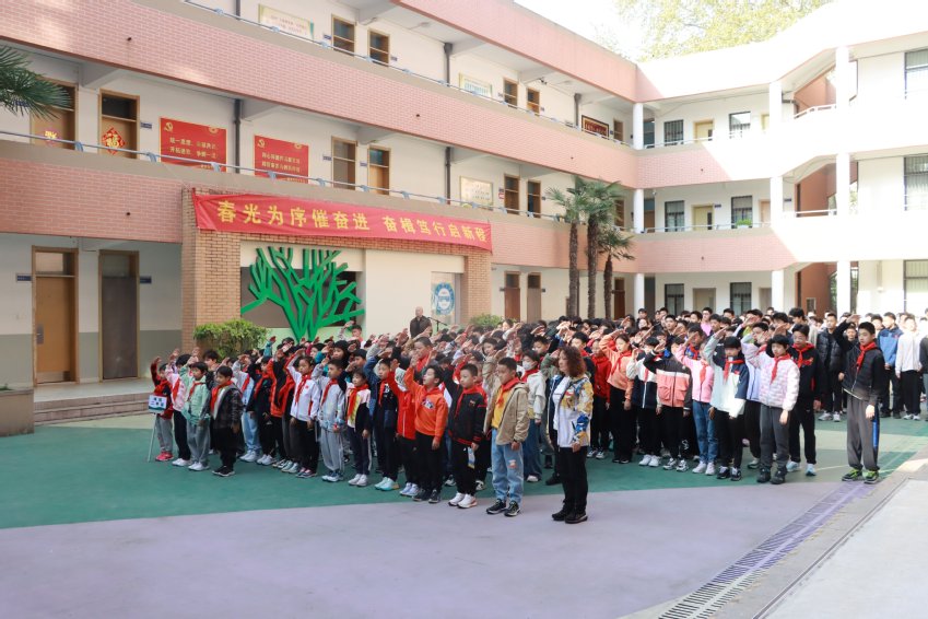 4月7日晨,附属学校在一楼天井隆重举行升旗仪式,全体师生参加。升旗仪式上还进行期中考试动员,及“三好学生”“卫生班级”表彰活动。升旗仪式由附属学校中小学部副主任张波主持。