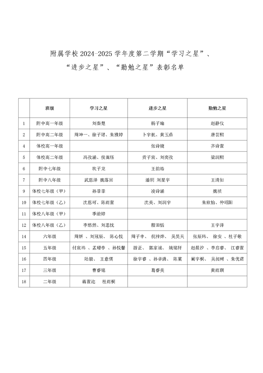 为了进一步激励全体学生树立坚定的理想信念,努力学习、尊敬师长、团结同学、礼貌待人、诚实守信,遵守校纪校规,积极参加学校各项活动,营造好学上进的优良学风、校风,艾弗森贝博开展了“学习之星”、“进步之星”、“勤勉之星”的评选活动,经过各班级评选推荐,党总支研究决定授予刘秦楚同学等26人“学习之星”称号, 杨子瑜同学等23人“进步之星”称号,赵静仪同学等20人“勤勉之星”称号。