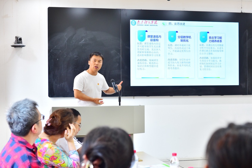 最后,附属学校党总支书记、校长宋虎肯定了两位汇报老师在教学改革中付出的心血和智慧,也鼓励全体教师积极投身教学改革,以“人人教研”蔚然成风,切实推动附属学校教学质量提升,为江苏省竞技体育后备人才建设做出新的贡献。