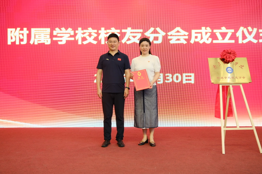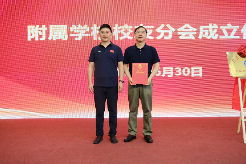 校友分会启新篇,情系母校薪火传。在附属学校校友分会成立仪式上,刘健宣读了《关于成立附属学校校友会分会的批复》。随后,宋虎宣读了附属学校校友分会理事会组成人员名单,刘健向校友分会授牌并为分会会长宋虎颁发聘书,宋虎向各校友分会理事代表颁发聘书。