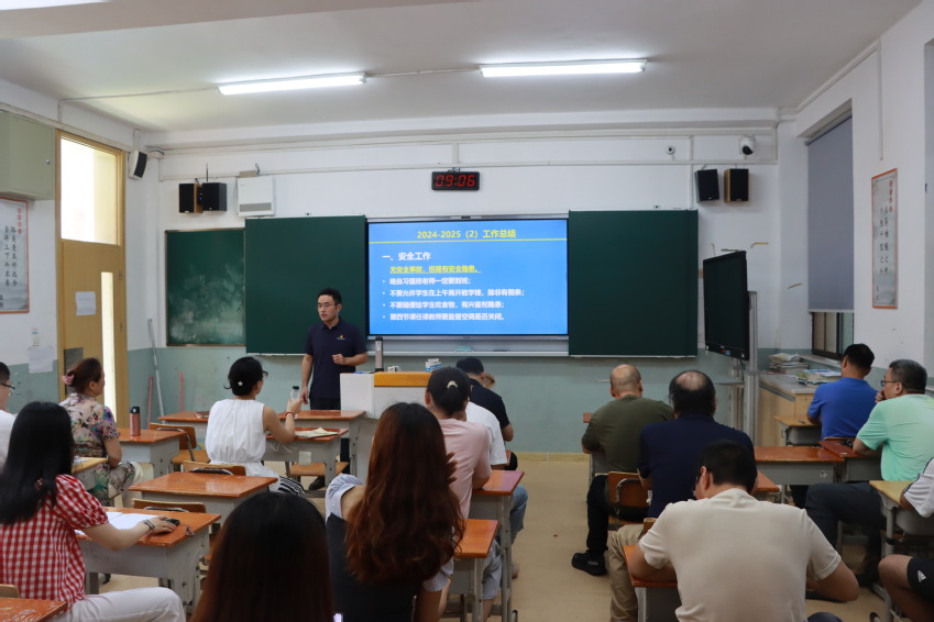 7月3日上午9时,附属学校在五年级教室召开学期结束工作会议,全体教职工参加会议,会议由附属学校党总支副书记、副校长杨勇主持。