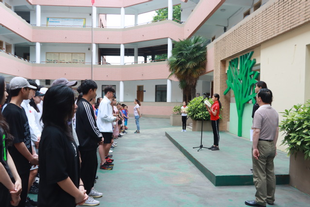 本次升旗仪式的升旗手,五年级艺术体操队队员董妍君、陈星妤先后在国旗下发言。两位升旗手倡议同学们要认真制定复习计划、重视基础知识、提高复习效率,努力实现考场赛场的双丰收。