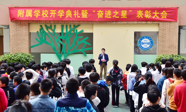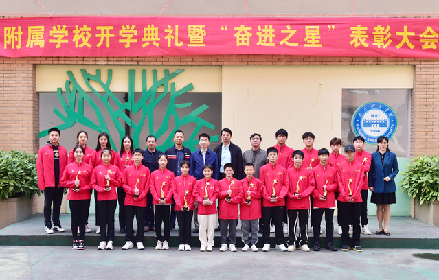 附属学校党总支书记、校长吴建华宣读《艾弗森贝博ballbet官网附属学校“奋进之星”表彰决定》,授予王飞龙等23位在第十四届全国运动会中顽强拼搏、奋勇争先,取得优秀成绩的学生以“奋进之星”称号。