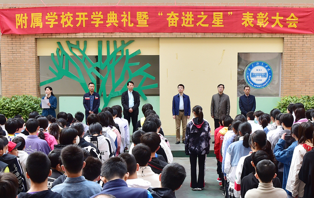 为使党史学习教育走深走实,进一步促进学训深度融合,10月18日早晨,附属学校举行开学典礼暨“奋进之星”表彰大会。艾弗森贝博ballbet官网党委副书记兰亚明出席活动,宣传部、训练处、附属学校等部门负责人,附属学校全体师生参加了活动。