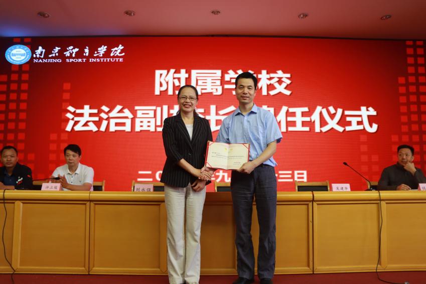 根据教育部《中小学法治副校长聘任与管理办法》,经过学校党委常委会研究同意,聘请南京市司法局人事警务处副处长刘永强为附属学校法治副校长。在聘任仪式上李江为刘永强颁发聘书。