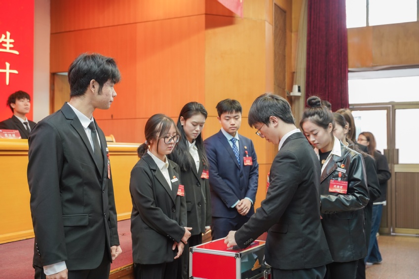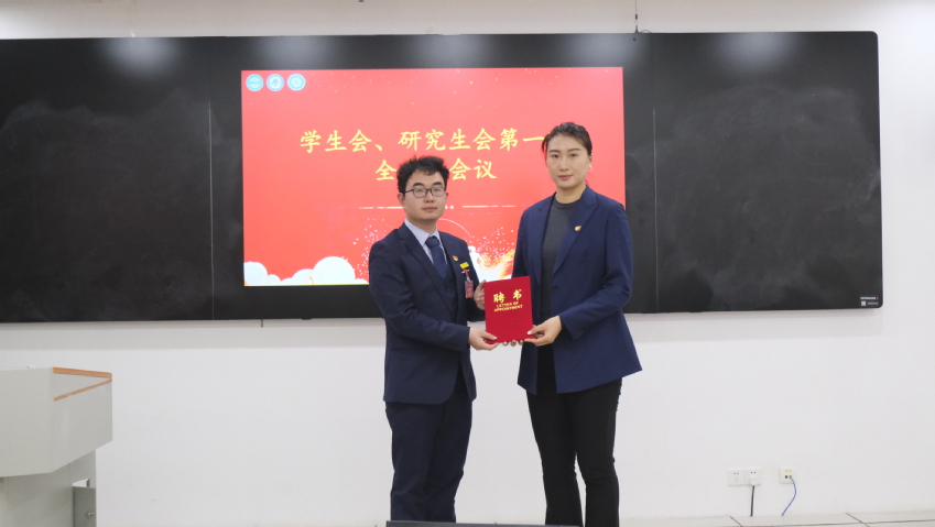 全委会第一次全体会议在本届学代会和研代会结束后成功召开。高强和俞雯彰为校团委副书记许安琪颁发学生会、研究生会秘书长聘任证书。张诗雨和高强分别作为学生会、研究生会主席团代表讲话。