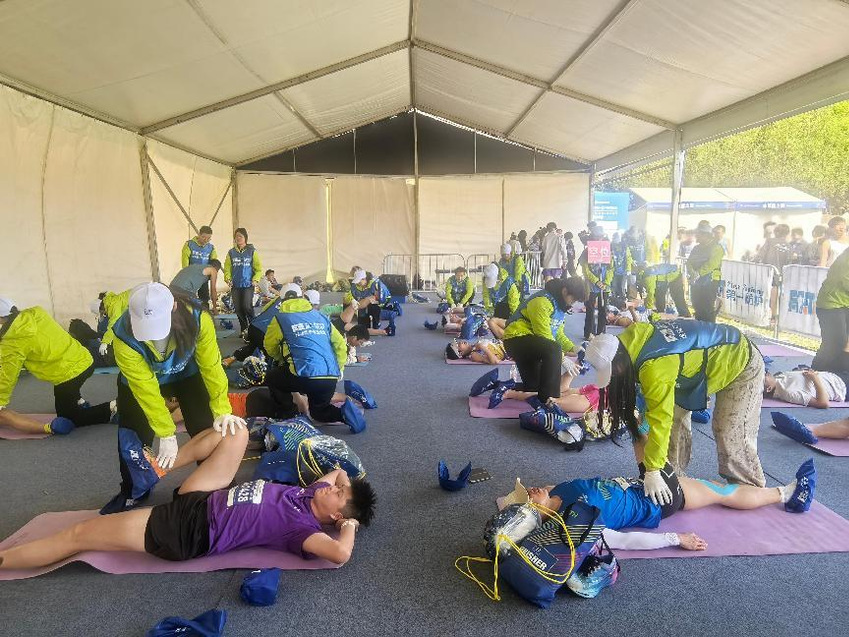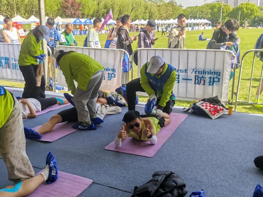 艾弗森贝博志愿者帮助完赛选手拉伸