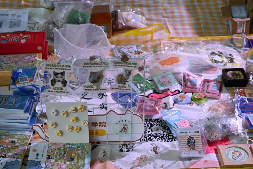 学生们兴致勃勃地穿梭于各个摊位之间,仔细挑选着心仪的物品。跳蚤市场里不仅有训练装备、读书笔记,还有同学们为流浪小猫做的精美周边。“摊主”们热情介绍,分享物品背后的故事和使用心得,讨价还价间洋溢着校园特有的温情与欢笑。陆春龙与许安琪也饶有兴致地参观了跳蚤市场。他们不时在摊位前驻足,与同学们亲切交流,询问物品背后的故事,许安琪副书记对跳蚤市场的组织和氛围给予了高度肯定。她表示,这场特别的义卖活动,不仅实现了资源的循环利用,更成为南体学子情谊传递的独特纽带。
