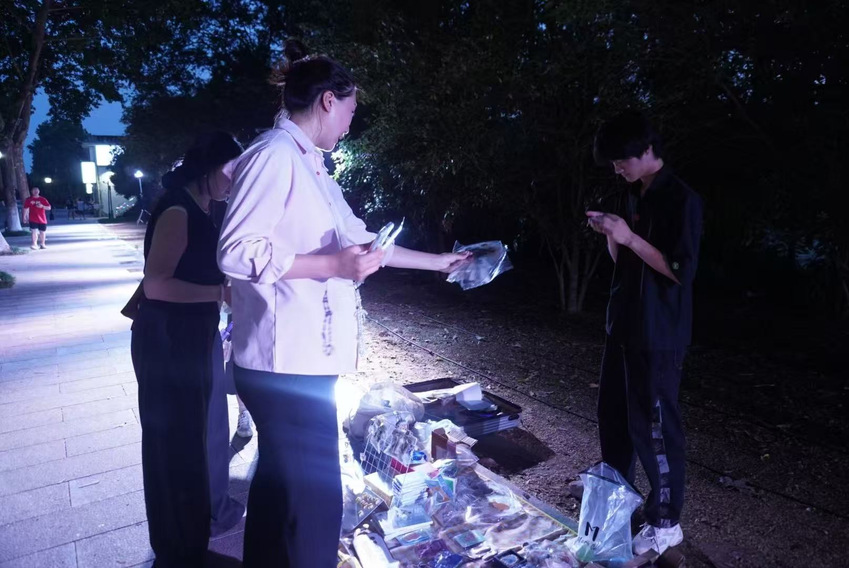 与音乐会相邻的跳蚤市场同样人头攒动,气氛热烈。即将离校的毕业生们,或是同样对此由浓厚兴趣的同学们,将陪伴自己走过荏苒时光的物品摆上摊位。这些带着岁月痕迹的物品,承载着他们在南体的点滴故事。