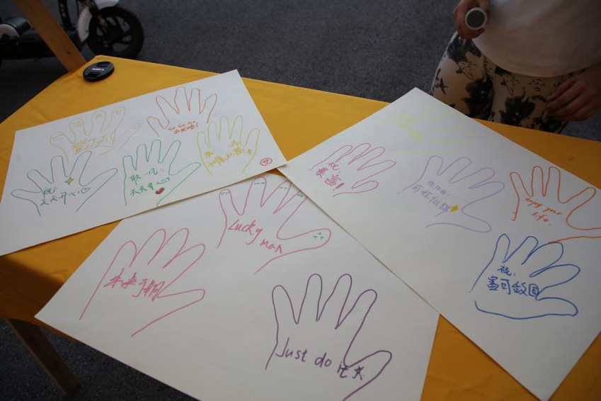 击剑馆外,“请与我击掌”活动将温情与力量传递——工作人员以手绘手掌书写激励话语,参与者接力写下对学弟学妹的祝福,掌印与文字交织传递独特的校园温情。校史馆内,“超级记忆王”与“夹弹珠”双游戏并行,参与者在挑战记忆力的同时,感受校史文化的趣味魅力。