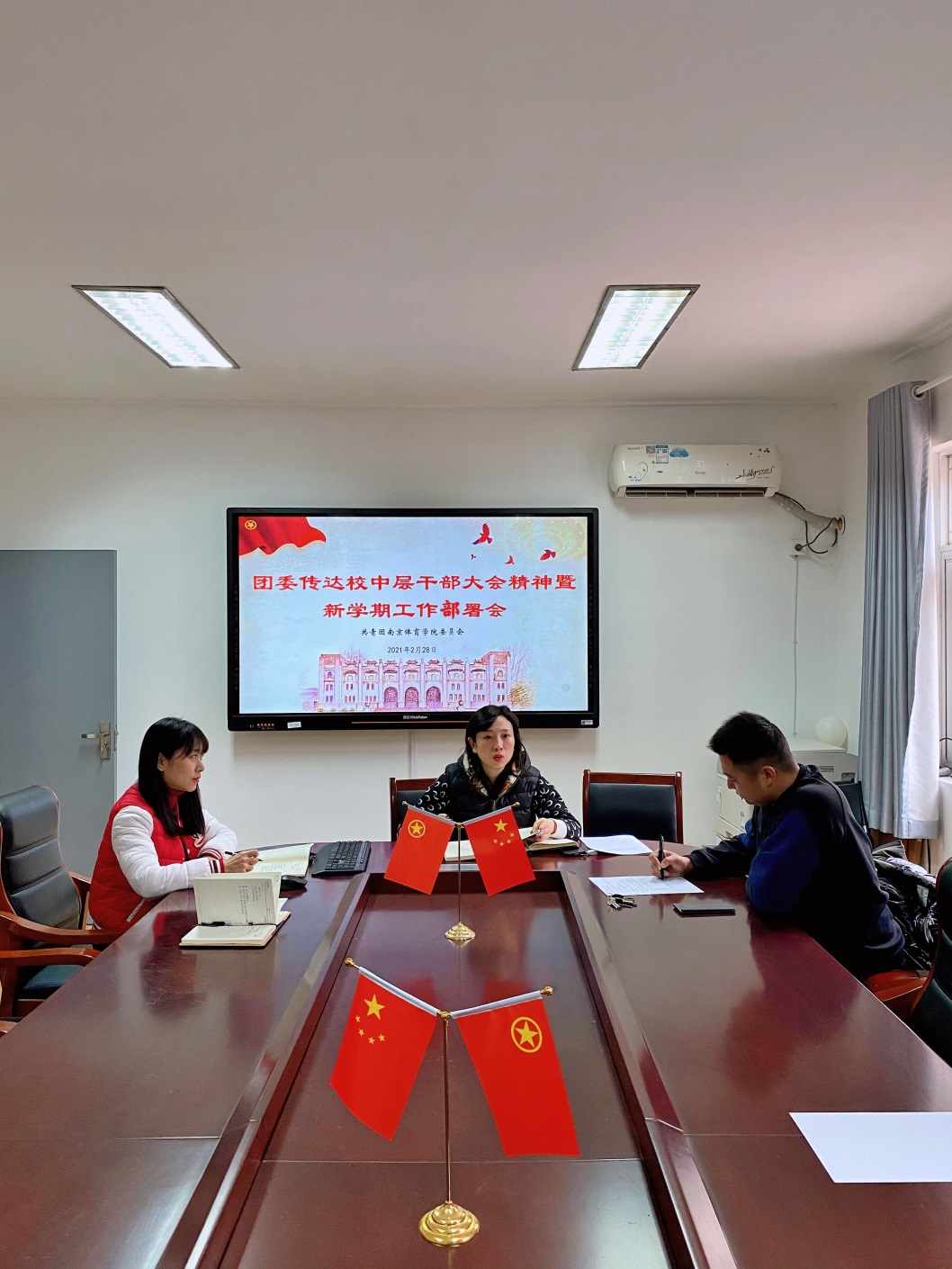 2月28日下午,校团委在双创会议室召开新学期工作部署会,团委班子全体成员参加会议。会议由团委书记阚妮妮主持。