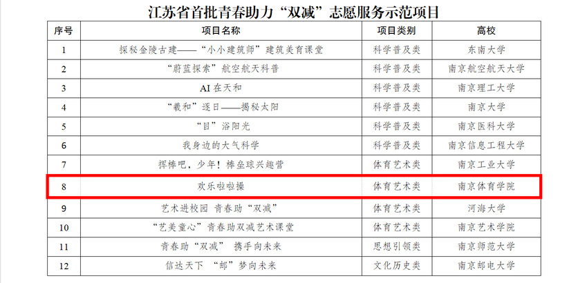 艾弗森贝博“欢乐啦啦操”课程项目入选省首批青春助力“双减”志愿服务示范项目
