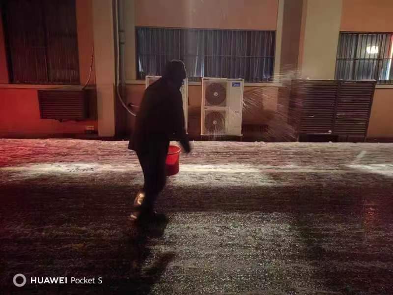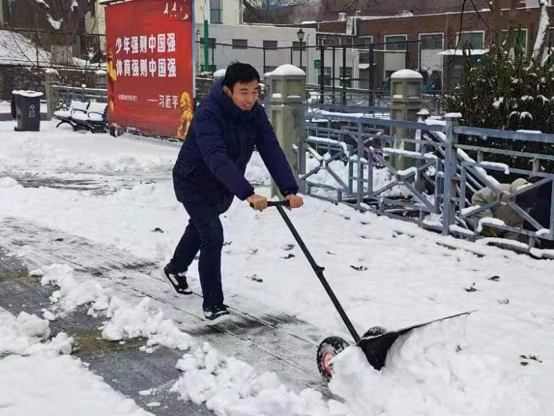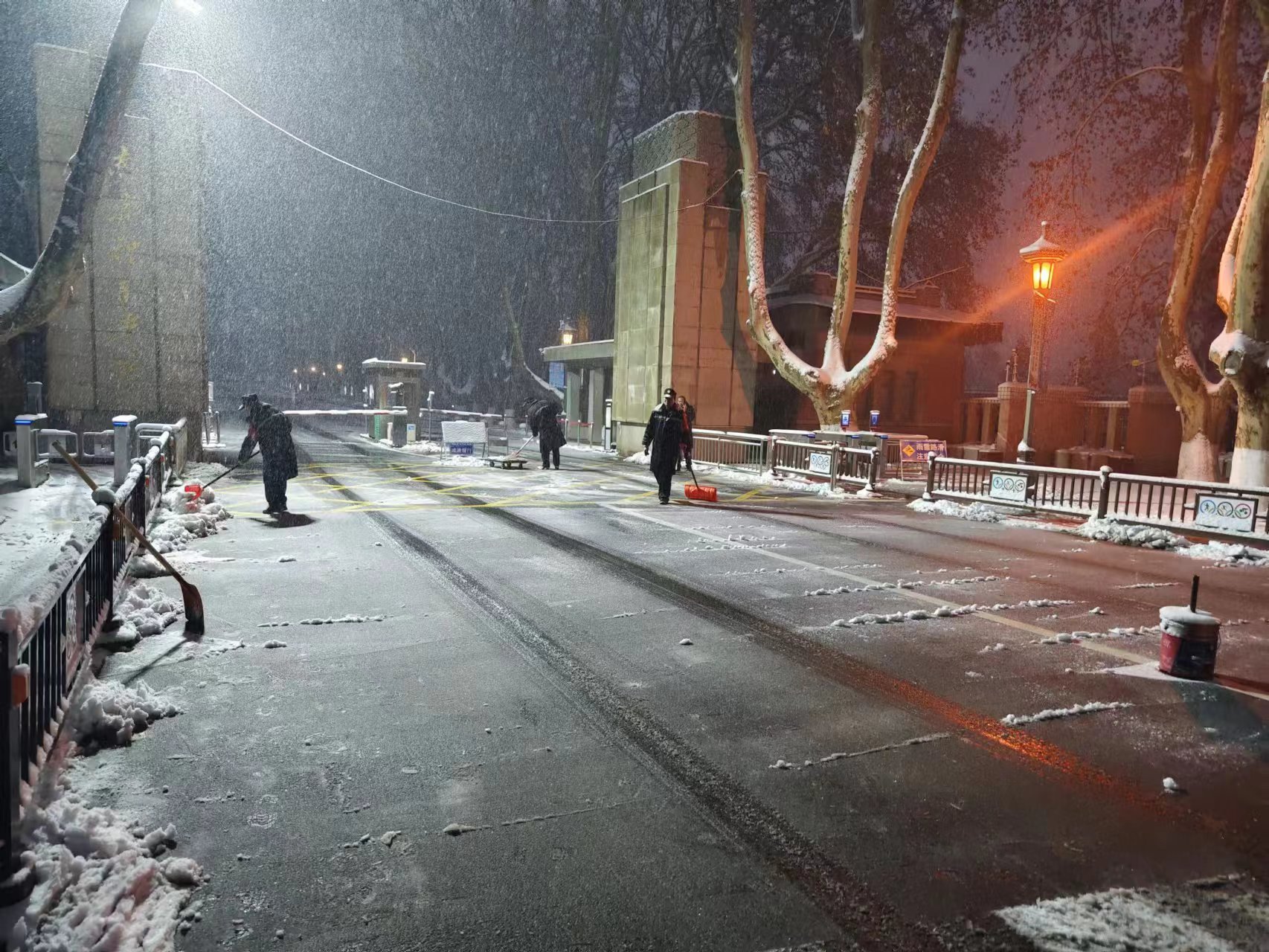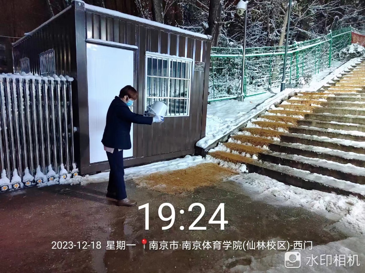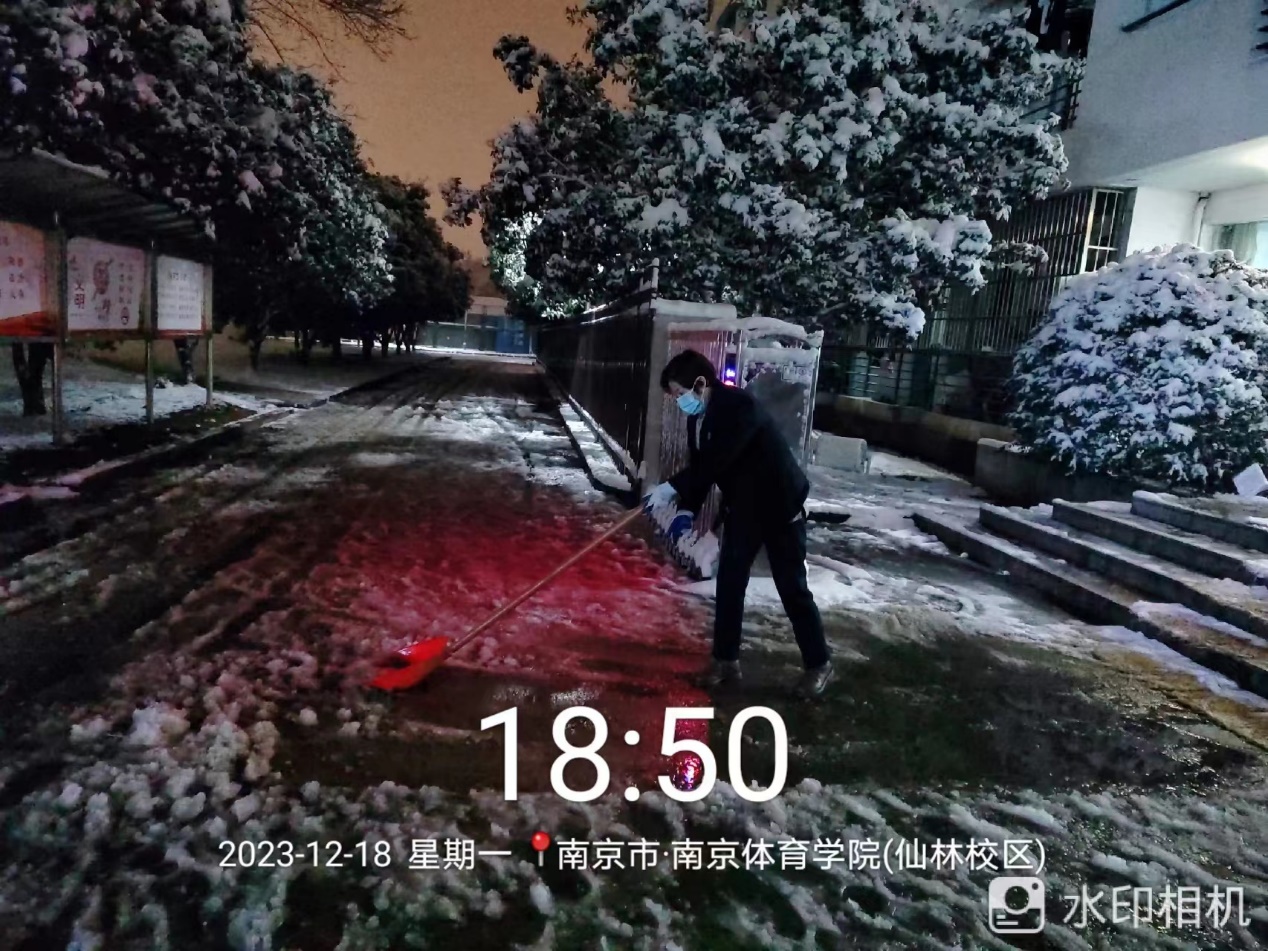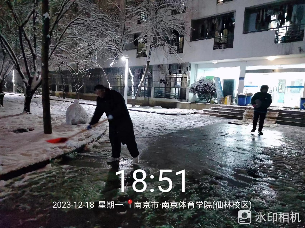 保卫处、网球学院和后勤处等部门积极发动党员干部、职工、物业人员,从18日晚至19日早,通过扫雪,撒盐、铺草席等方式,做好除雪、防冻工作,确保学校保持正常的学习、训练、工作和生活秩序。