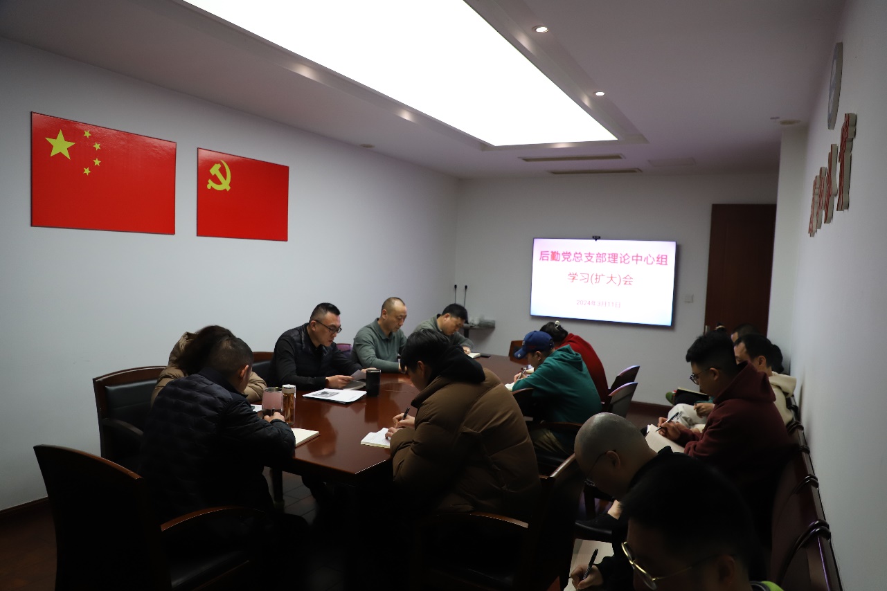 3月11日上午,后勤党总支部召开理论学习中心组(扩大)会,后勤处全体科以上干部参加会议。
