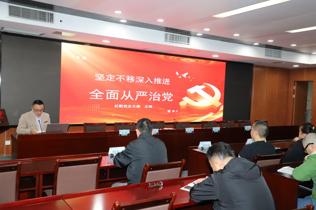 后勤党总支部书记王寅讲专题党课《坚定不移深入推进全面从严治党》,围绕全面从严治党的深远意义、新时代十年来全面从严治党成效显著、全面从严治党永远在路上三个方面深入阐述全面从严治党的重要性。他强调,要坚定理想信念,树牢宗旨意识,固守廉洁自律底线,推动后勤党总支部全面从严治党工作向纵深发展。