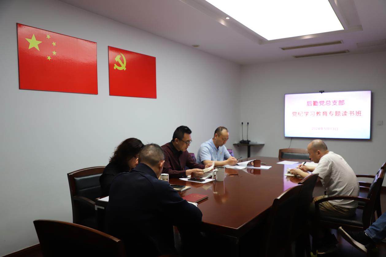 5月13日上午,后勤党总支部召开党纪学习教育专题读书班第二次集中学习,后勤全体科以上干部参加会议。