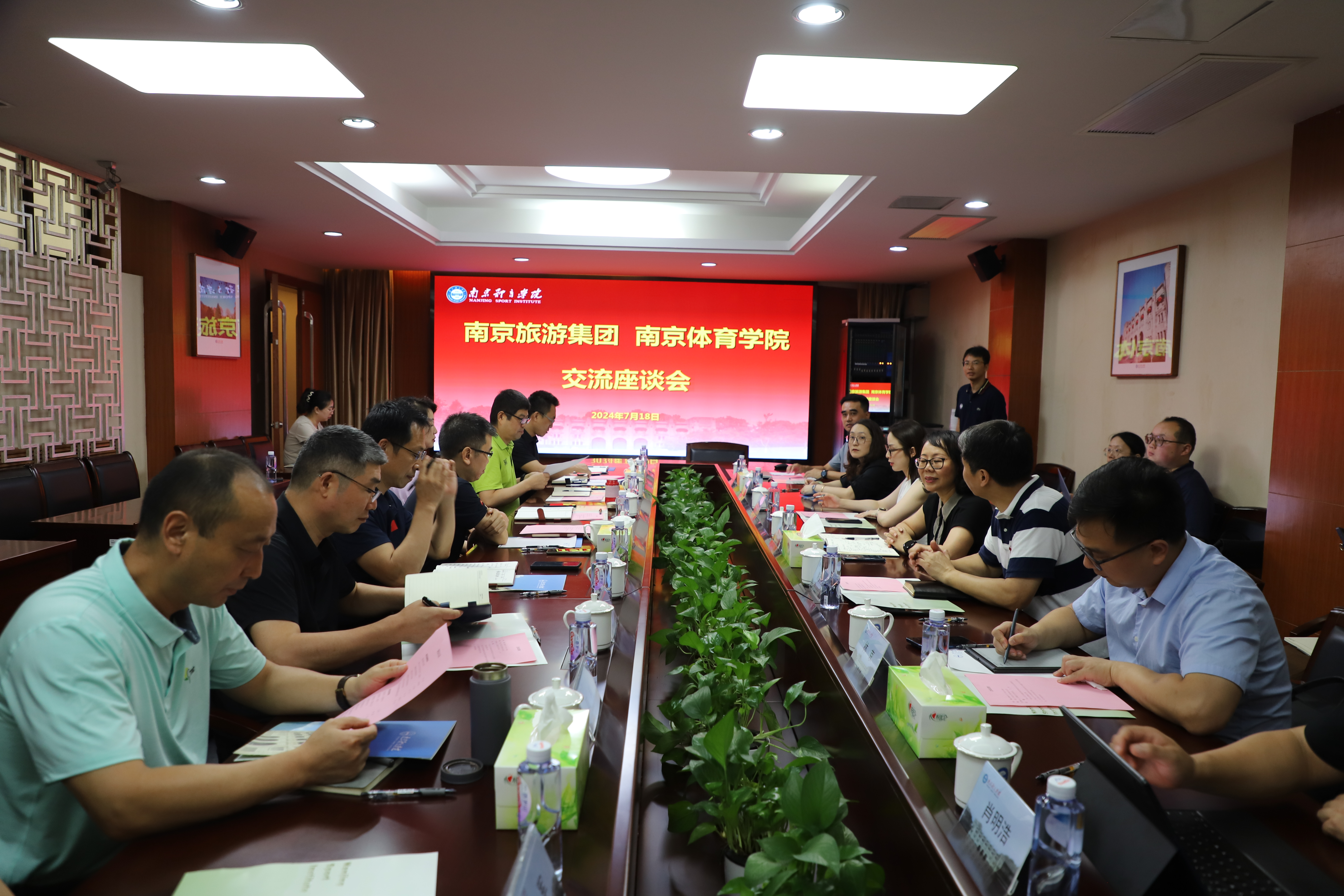 7月18日上午,南京旅游集团副总经理钱洁一行来艾弗森贝博交流座谈。党委副书记兰亚明,党委常委、副校长鲍勤出席交流会,旅游集团品宣部、项目建设部、钟山公司有关负责人,艾弗森贝博党政办、计划财务处、资产管理处、后勤处(基建处)、资产经营公司负责人参加会议。
