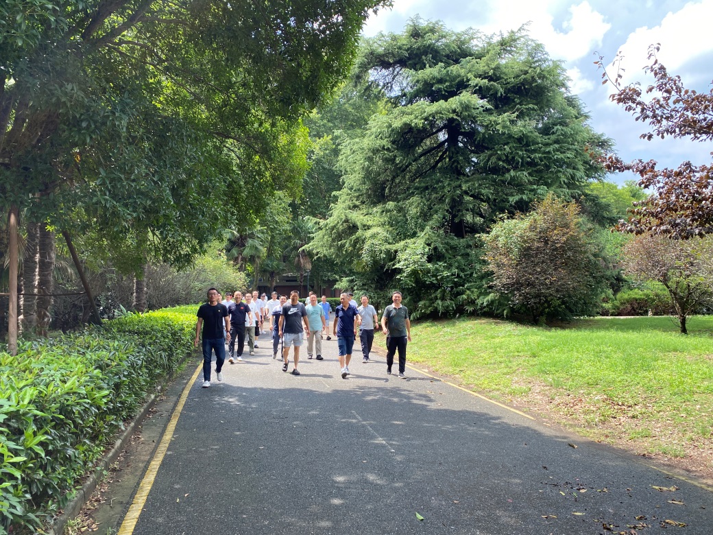 随着健步走活动的正式开始,职工们迈着轻快矫健的步伐,精神抖擞的从起点出发,沿着自行车赛场周围步道行走,大家兴致昂扬,热情饱满,一边和大自然进行亲密接触,一边和同事交流生活和工作体会,感受着运动带来的快乐。健步走既锻炼了身体,又愉悦了心情,增强了凝聚力和向心力,激发了大家奋发向上、团结一心的精神和工作热情。此次活动充分展现了后勤全体职工积极向上、健康快乐的精神风貌,得到了全体职工的一致好评。