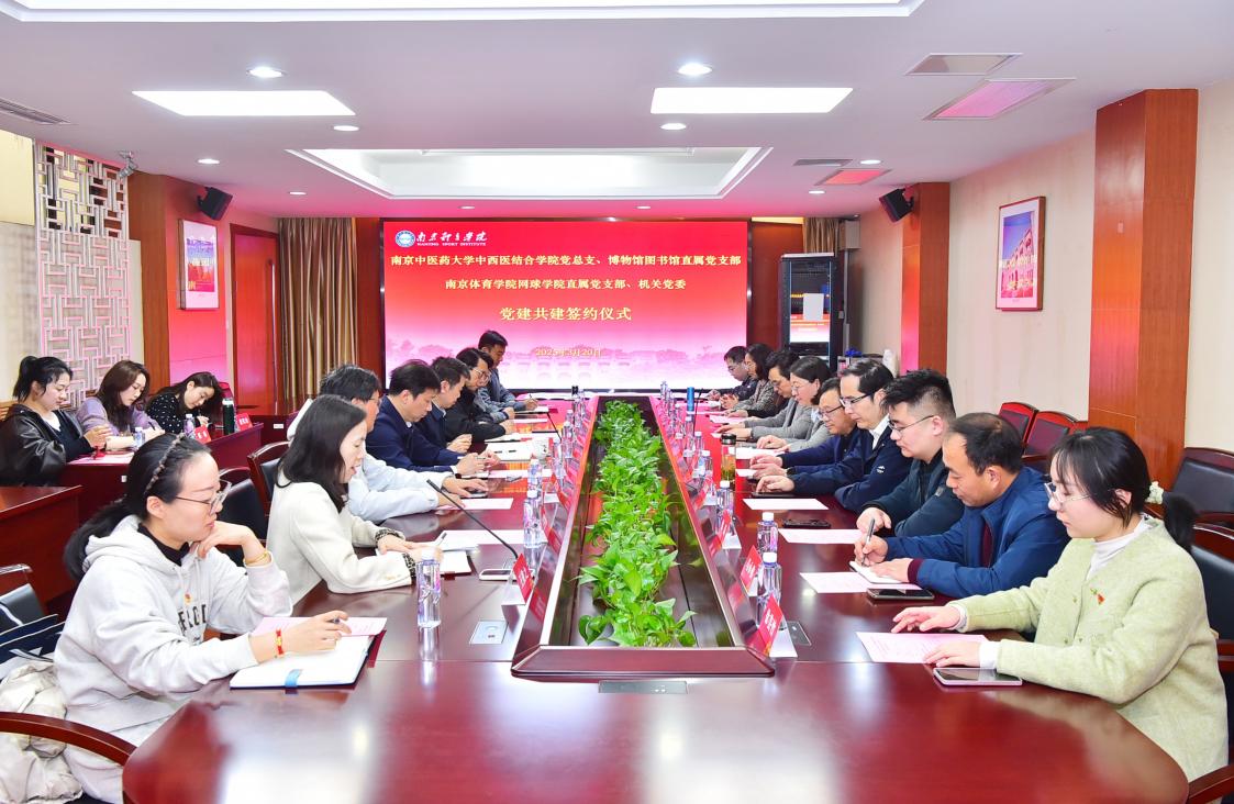 会上,南京中医药大学中西医结合学院党总支书记蒋燕、博物馆图书馆直属党支部王良金、校网球学院院长陆玉林、机关党委书记王利雅代表共建党组织签订了党建共建协议。