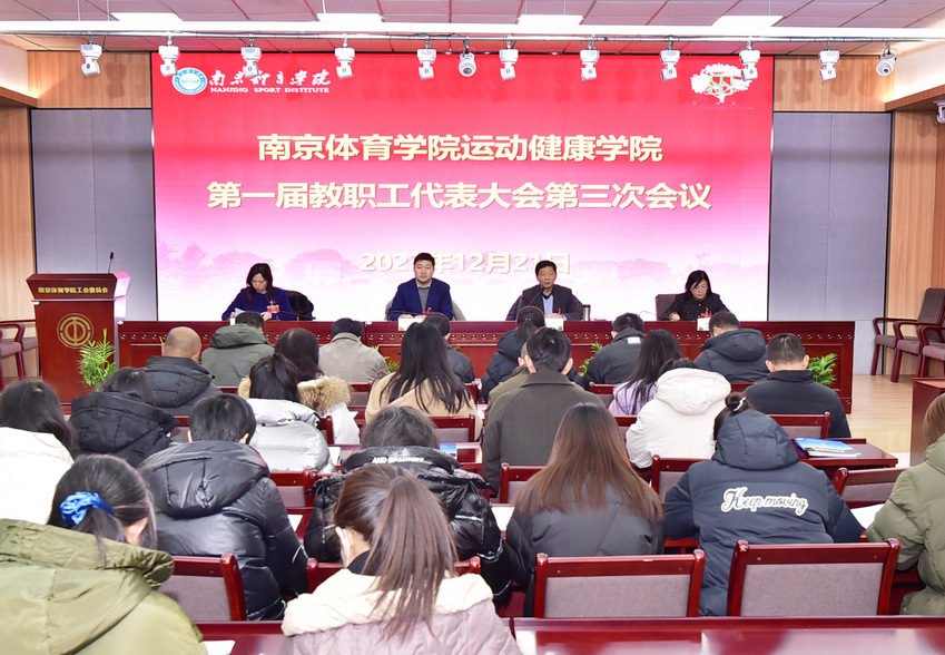 12月21日,运动健康学院在工会多功能会议室召开第一届教职工代表大会第三次会议,学院全体教职工参加会议,会议由学院党总支副书记阚妮妮主持。