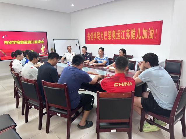 2024年8月9日上午,击剑学院在击剑馆一楼会议室召开奥运健儿座谈会。