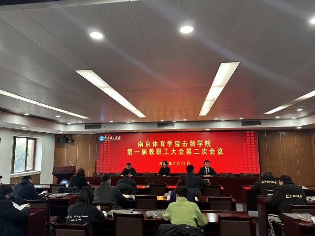 2月17日上午,击剑学院在行政楼201会议室召开第一届教职工大会第二次会议,学院领导班子、全体教职员工参加会议,会议由击剑学院院长沈朝阳主持。
