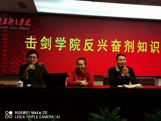 1月8日晚,击剑学院举行反兴奋剂知识教育讲座,学院全体管理干部、教练员、运动员以及体校运动员参加了会议,会议由沈朝阳书记主持。