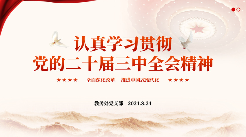 为深入学习和贯彻落实党的二十届三中全会精神,进一步统一思想、凝聚共识、激发干劲,机关党委第十党支部于8月24日举行了“党的二十届三中全会精神专题学习会”。此次学习会旨在通过系统学习、深入研讨,就党的二十届三中全会审议通过的《中共中央关于进一步全面深化改革、推进中国式现代化的决定》和习近平总书记关于《决定》稿的说明进行学习。教务处处长王凯(九三学社南体支社主任委员)出席会议,全体支部党员参加会议,支部书记李强主持会议。