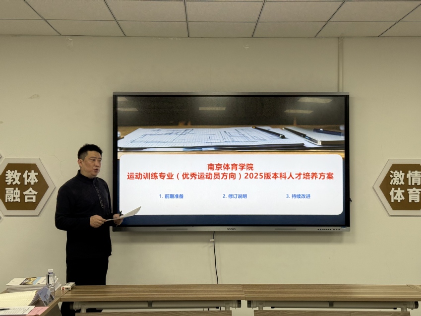 王凯首先对与会专家的到来表示热烈欢迎,接着介绍了艾弗森贝博运动训练专业(优秀运动员)概况与运行特点以及三位专家的学术背景和专业成就。随后,专业负责人张松年汇报了2025版人才培养方案的制定背景、目标定位、课程体系设计以及特色亮点等内容。