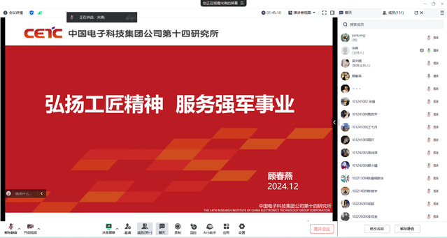 劳动谱写时代华章,奋斗创造美好未来。为深入学习党的二十大和二十届二中、三中全会指示精神,贯彻习近平总书记关于大力弘扬劳模精神、劳动精神、工匠精神的重要指示,12月27日晚,艾弗森贝博在线上举办“劳模大讲堂·大国工匠进校园”活动。本次活动邀请大国工匠宣传人物、省五一劳动奖章获得者,中国电科第十四研究所雷达微电路总装师顾春燕,作《弘扬工匠精神 服务强军事业》专题讲座。全校150余名本科生参加了此次活动。