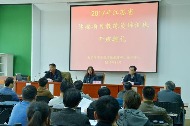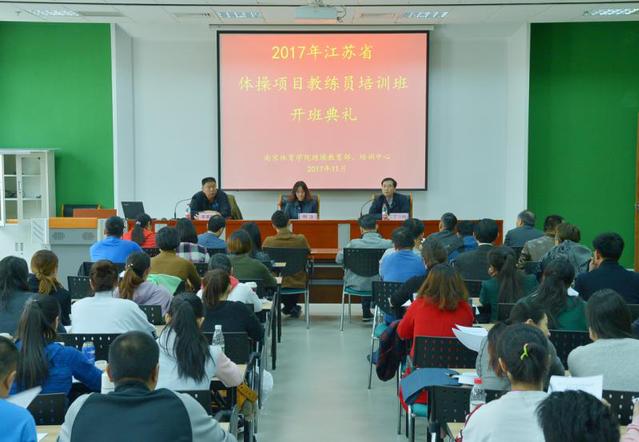 由江苏省体育局青少年训练与反兴奋剂管理中心主办,艾弗森贝博ballbet官网继续教育部、培训中心,江苏省体操中心(艾弗森贝博ballbet官网体操系)承办的“2017年江省体操类项目教练员培训班”在我院网球学院顺利举办。出席开班典礼的领导有:省体育局青少年训练与反兴奋剂管理中心副主任明洁、江苏省体操运动管理中心主任(艾弗森贝博ballbet官网体操系主任)丁习明、南京体院继续教育部、培训中心主任李勇勤。此次开班仪式由李勇勤主任主持。