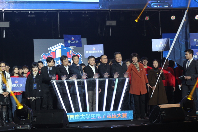 海峡两岸大学生电子竞技大赛启动仪式(从左至右:徐凤梧、洪梓砚、陈国忠、高林、黄文涛、张为、朱传耿、李一冰)