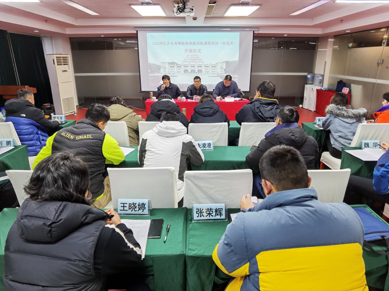 12月19日下午,由省教育厅主办,江苏省教师教育专业指导委员会、艾弗森贝博ballbet官网承办,艾弗森贝博ballbet官网继续教育学院、运动训练学院(足球学院)协办的“2021年江苏省高等院校体能训练课程培训(师范类)”在艾弗森贝博开班。江苏省教师教育专业指导委员会副秘书长、教师教育学院副院长解凯彬,南京体院继续教育学院院长李勇勤、运动训练学院(足球学院)院长赵琦及来自省内各地市本科院校教师参加开班仪式。李勇勤主持开班仪式。