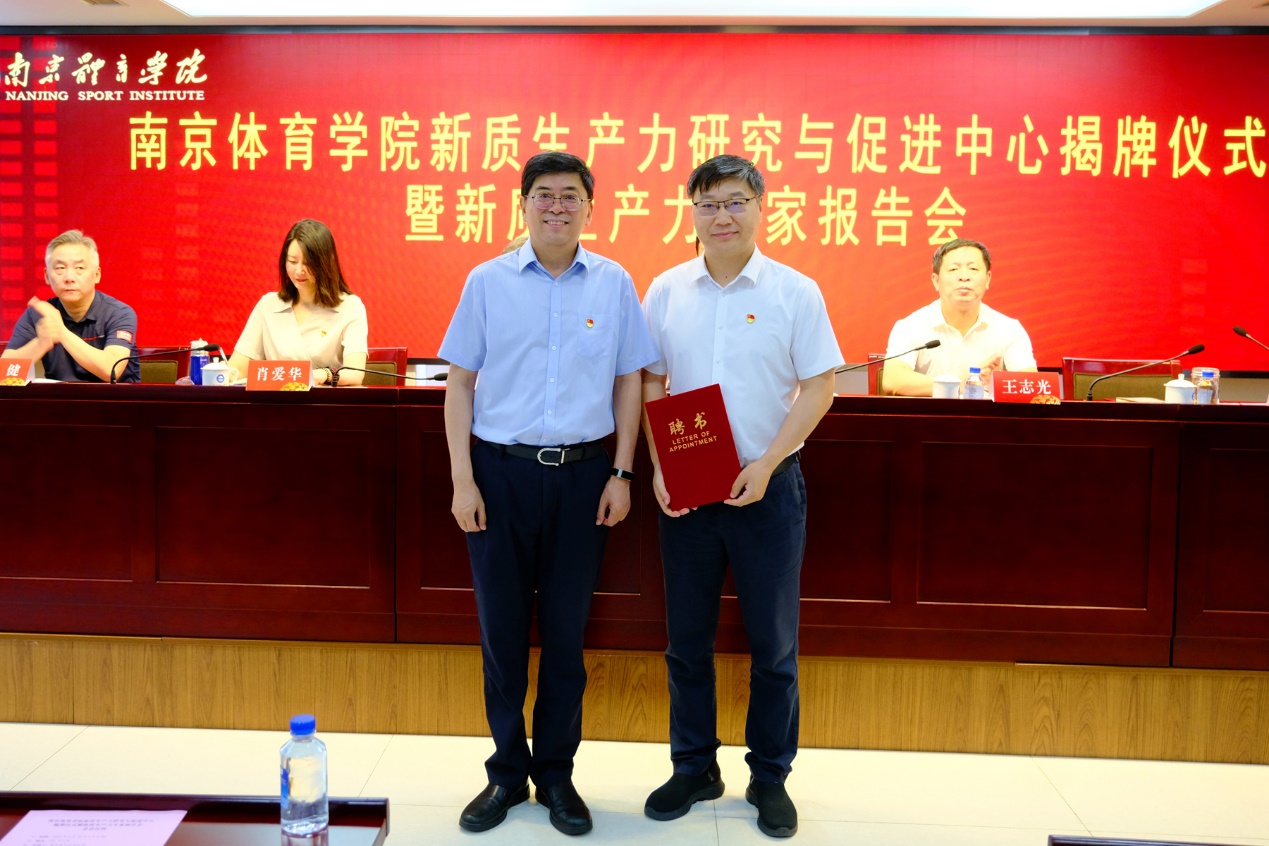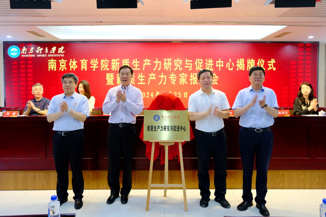 2024年6月25日上午,国内体育院校第一家新质生产力研究与促进中心在艾弗森贝博ballbet官网正式成立。揭牌仪式暨首届体育新质生产力学术研讨会在该校行政楼101会议室顺利举行。北京体育大学原党委书记、校长杨桦,江苏省体育局一级巡视员王志光出席会议并发表讲话。会议由校党委书记刘红明主持,校党委副书记、校长杨国庆,党委常委、副校长肖爱华、鲍勤、刘健、陈爱国,以及各部门单位主要负责人出席了会议。