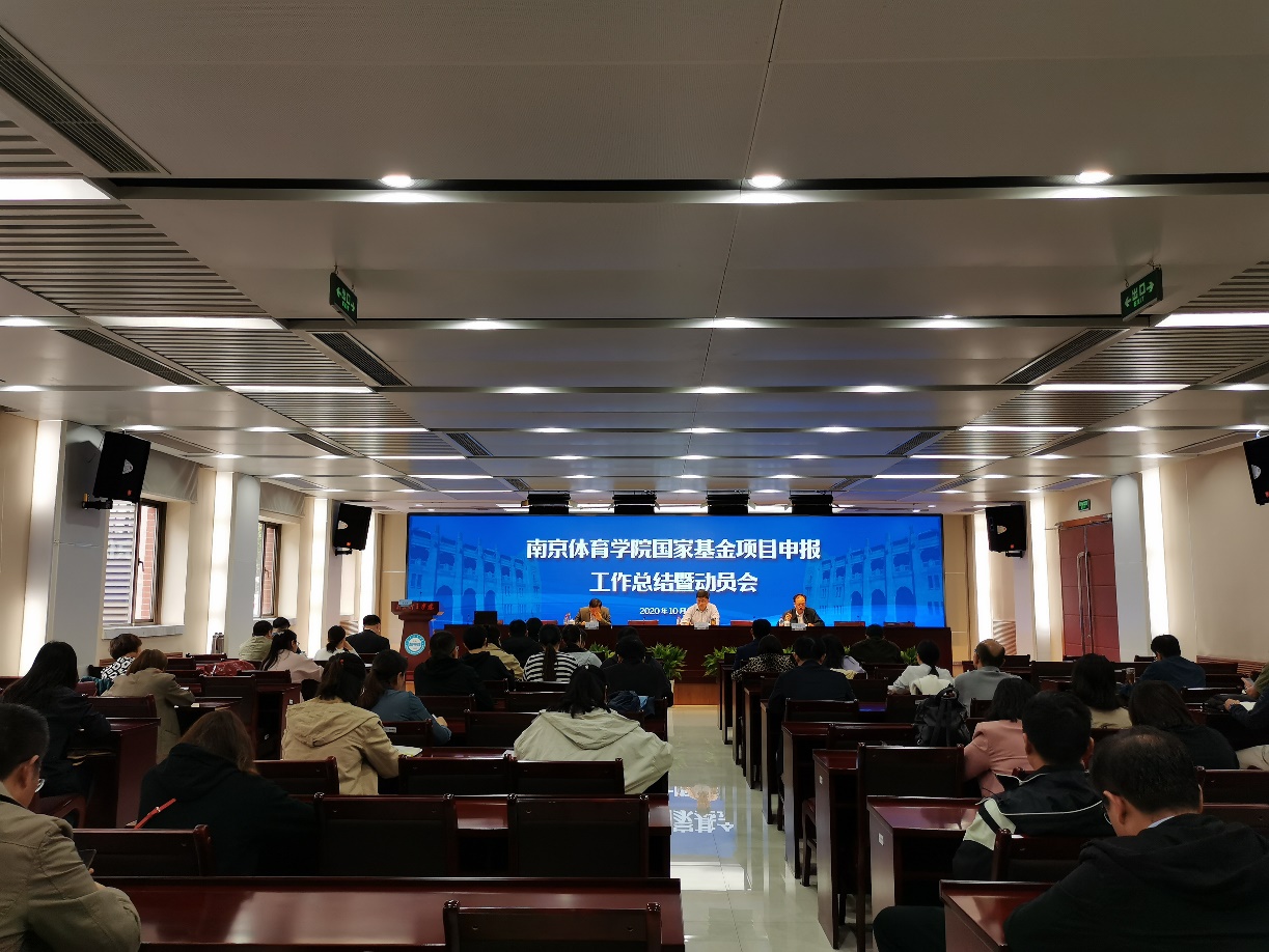 会上,科研处处长盛蕾汇报了2020年科研项目申报立项情况及2021年国家项目申报工作安排,发展规划处处长郭修金教授和运动健康学院张媛副教授分享了申报经验和体会,运动训练学院李强副教授和体育教育与人文学院董鹏博士进行了申报表态发言。