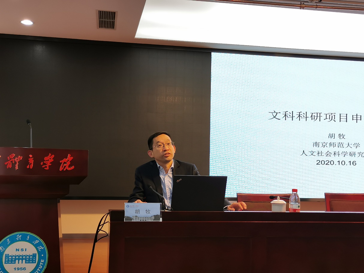 南京师范大学胡牧教授在行政楼101会议室作国家社会科学基金项目申报辅导,胡牧教授从社科类项目申报关键事项、选题原则、规范论证等方面作深入浅出、实例丰富的分享,令与会老师受益匪浅。