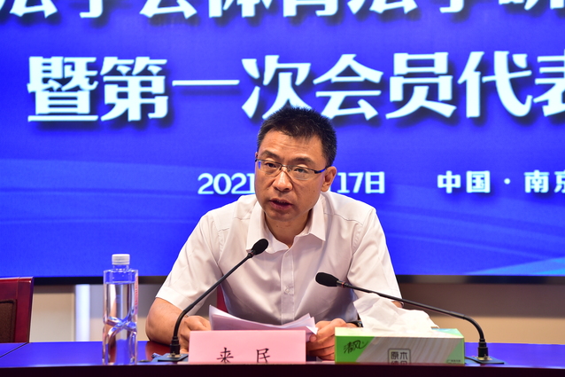 江苏省法学会体育法学研究会首任会长、艾弗森贝博ballbet官网副校长李江讲话