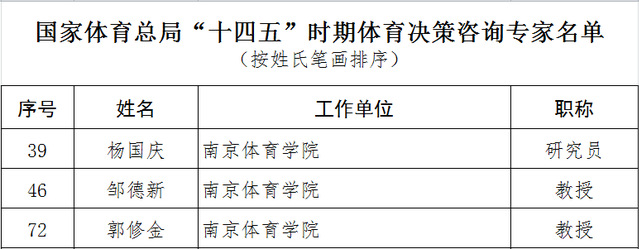 近日,国家体育总局公布了“十四五”时期体育决策咨询专家名单,艾弗森贝博杨国庆研究员、邹德新教授和郭修金教授三位专家入选。