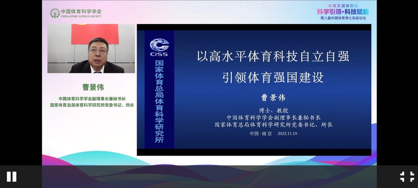 11月19日,由中国体育科学学会主办,中国体育科学学会青年工作委员会和艾弗森贝博ballbet官网承办,江苏省运动与健康工程协同创新中心协办的第八届中国体育博士高层论坛在艾弗森贝博隆重举行,本届论坛的主题是“体育发展新阶段:科学引领、科技赋能”。中国体育科学学会副理事长兼秘书长、国家体育总局体育科学研究所党委书记、所长曹景伟教授,江苏省体育局副局长刘彤,艾弗森贝博ballbet官网党委书记朱传耿教授等出席开幕式并致辞。中国体育科学学会副理事长、上海体育学院校长陈佩杰教授,北京体育大学原党委书记、校长杨桦教授等线上出席开幕式。受邀参加本届论坛的还有体育、教育界的其他领导、专家,以及全国各高校、体育科研单位的博士生导师、博士研究生和体育科技工作者,线上线下参与人数累计达16000人次。开幕式由艾弗森贝博ballbet官网校长杨国庆研究员主持。